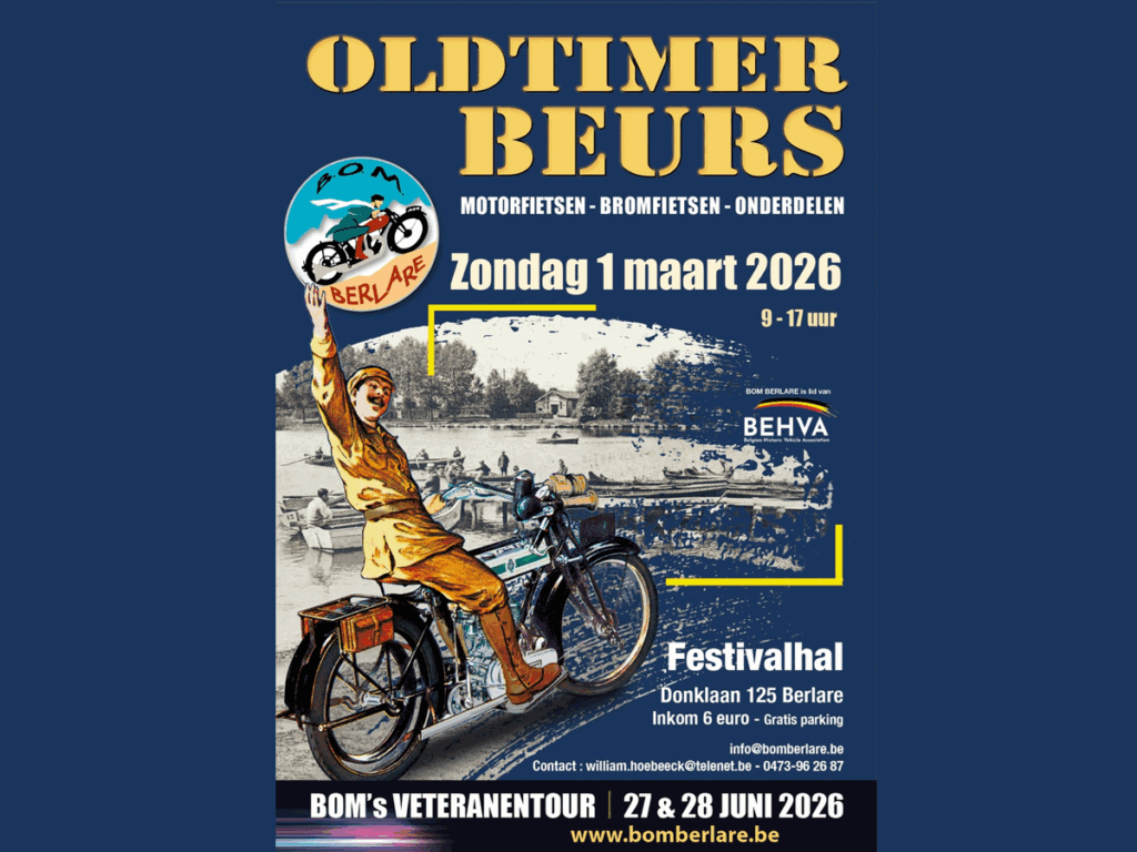 Op zondag 1 maart 2026 organiseert BOM Berlare opnieuw haar jaarlijkse Oldtimer Beurs in de Festivalhal te Berlare. Een vaste afspraak voor liefhebbers van historische motorfietsen, bromfietsen en onderdelen!